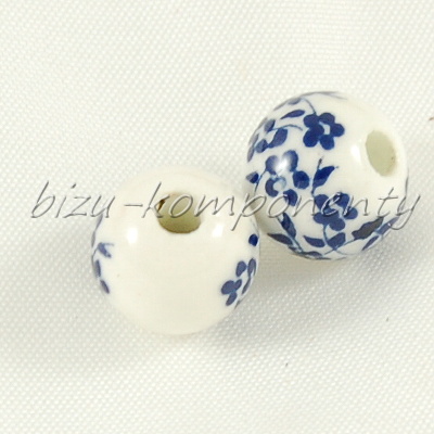 Keramický korálek s modrými kvítky 10mmSkladem 36 ks9,00 Kč/ ks