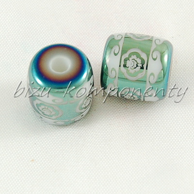 Keramický korálek, zelený váleček s pokovením, 12x11mmSkladem 2 ks6,00 Kč/ ks