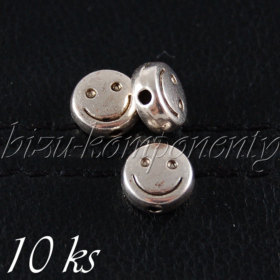 Korálek smajlík, stříbrná barva 10ksSkladem 39 bal9,00 Kč/ bal