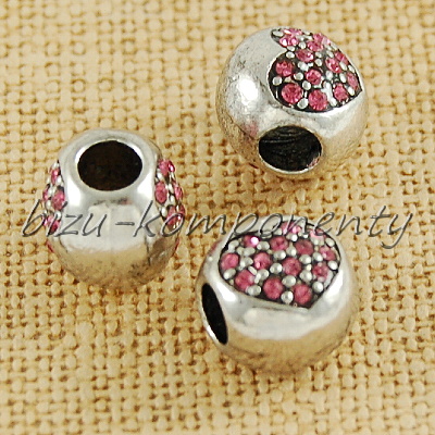 Kovový korálek s růžovými šatonovými srdíčkySkladem 31 ks12,00 Kč/ ks