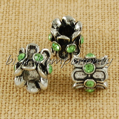 Kovový korálek se světle zelenými šatonySkladem 4 ks12,00 Kč/ ks