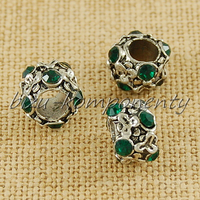 Kovový trojlístkový korálek s tmavě zelenými šatonySkladem 13 ks12,00 Kč/ ks