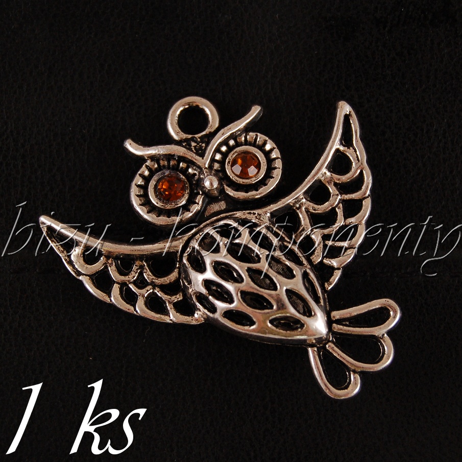 Zobrazit všechny novinkyLetící 3D sova s hnědýma očima, stříbrná barva