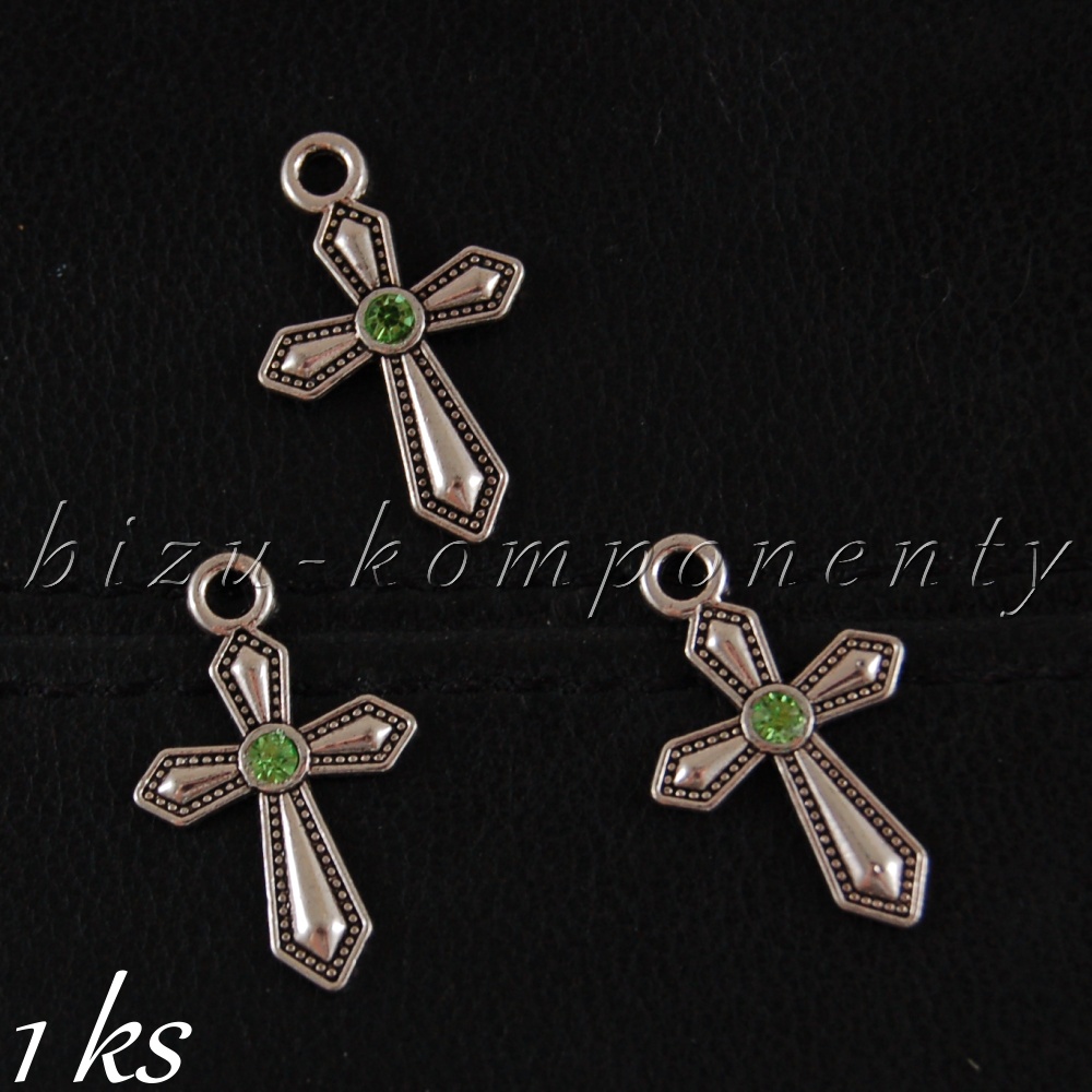 Malý křížek se zeleným šatonem, stříbrná barvaSkladem 3 ks9,00 Kč/ ks