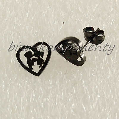 - Náušnice srdce s dětmi, chirurgická ocel, černá barva