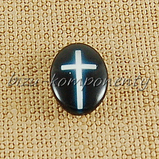 - Oválný skleněný kabošon křížek, 18x13mm