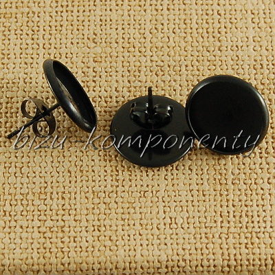 - Puzety s lůžkem 12mm z chirurgické oceli, černá barva 1pár