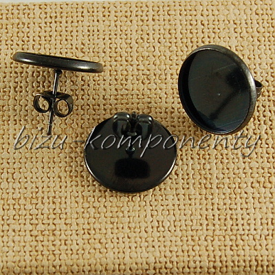 - Puzety s lůžkem 14mm z chirurgické oceli, černá barva 1pár