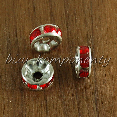 Rondelka s červenými šatony, stříbná barva 8mmSkladem 27 ks4,00 Kč/ ks