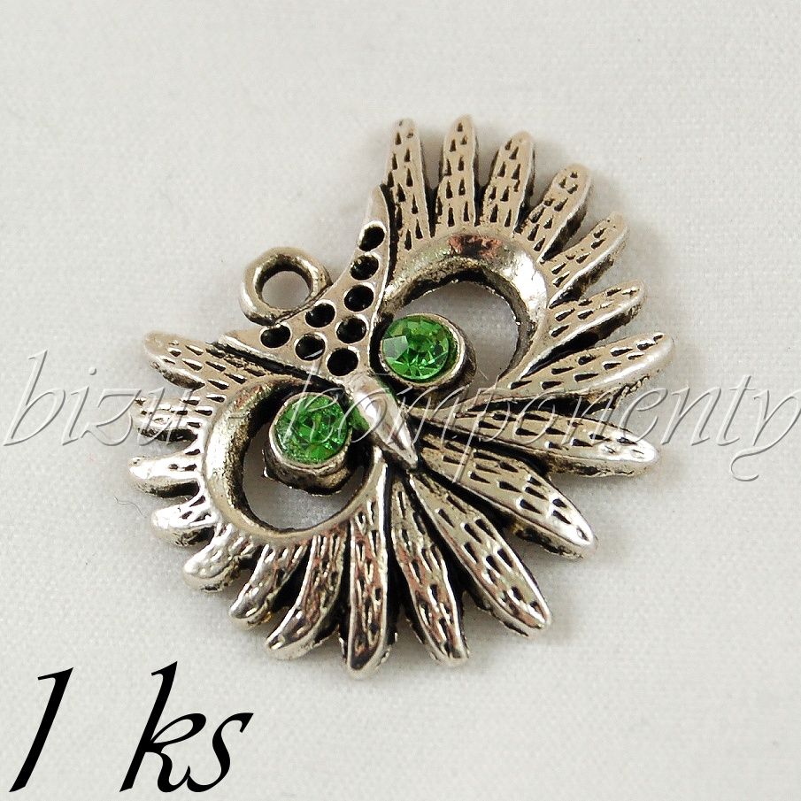 Rozčepýřená sova se zelenýma očima, stříbrná barvaSkladem 9 ks16,00 Kč/ ks