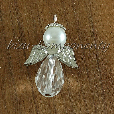 Na fotonávod na většího andílka se můžete podívat zde. Postup při sestavování tohoto andílka je obdobný. Liší se pouze tím, že není potřeba používat malou perličku, protože otvor v kapce je menší a nýt nepropadává.