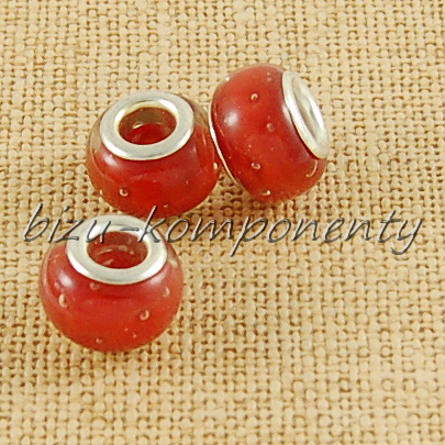 - Skleněný červený korálek s bublinkami