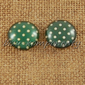 - Skleněný kabošon bílé tečky v zeleném, 12 mm
