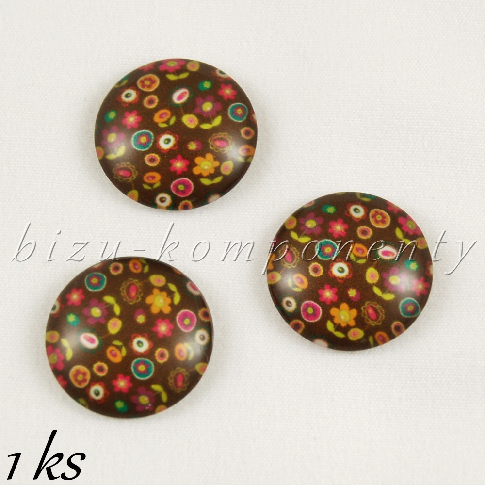 Skleněný kabošon hnědý s kytičkami 20mmSkladem 3 ks16,00 Kč/ ks