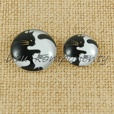 - Skleněný kabošon jin jang kočky, 20 mm