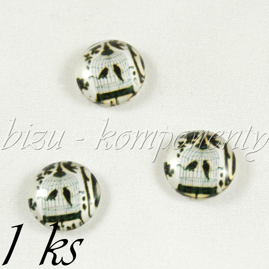 - Skleněný kabošon klec s ptáčky, 12 mm