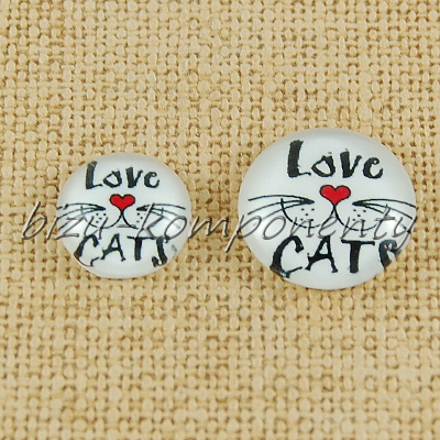 - Skleněný kabošon love cats, 14 mm