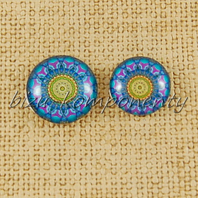 - Skleněný kabošon modro-žlutý, 16 mm