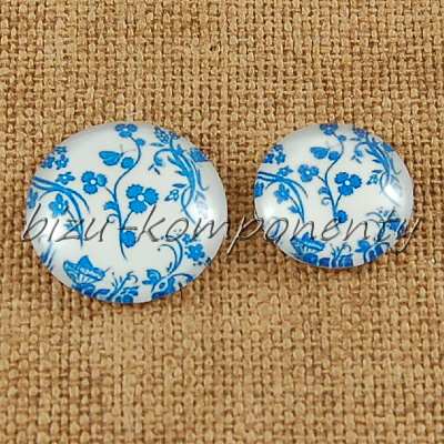 Skleněný kabošon modrý květ 7, 20mm