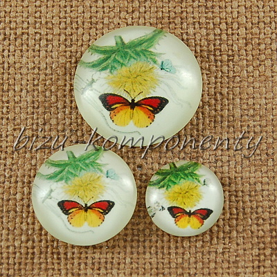 - Skleněný kabošon motýl na pampelišce, 12 mm