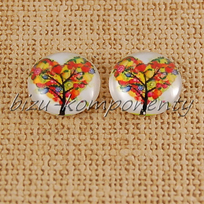 Skleněný kabošon ovocný srdíčkový strom, 12 mm