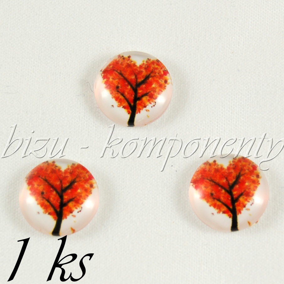 - Skleněný kabošon podzimní srdíčkový strom, 18 mm