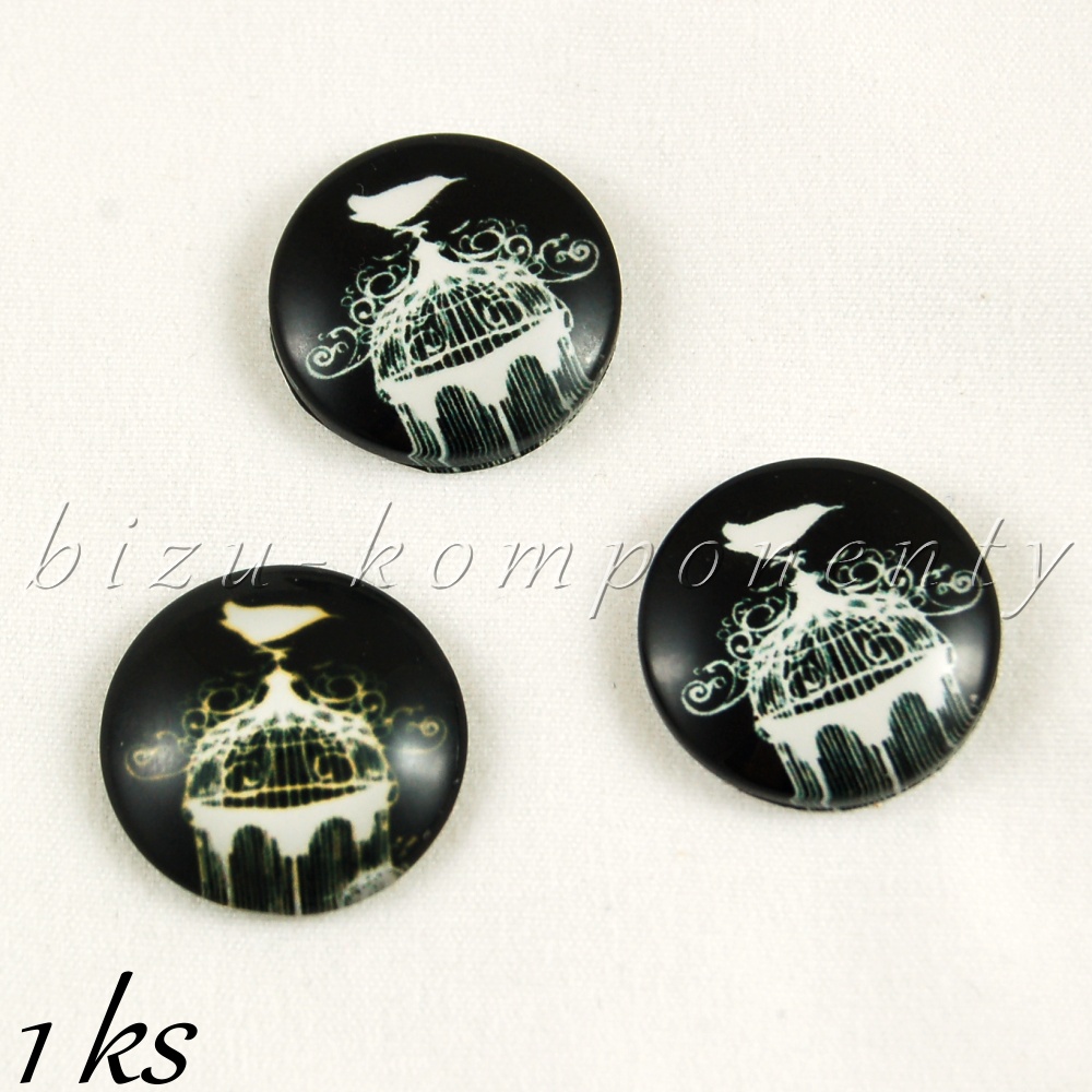 Skleněný kabošon ptáček na kleci v noci 20mmSkladem 5 ks16,00 Kč/ ks