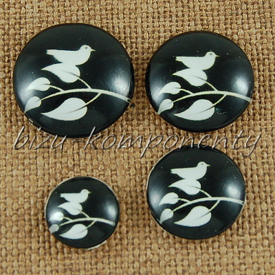 Skleněný kabošon ptáček na větvi v noci, 16 mmSkladem 9 ks13,00 Kč/ ks