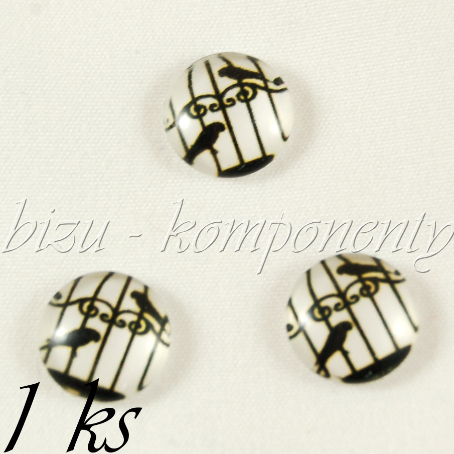 - Skleněný kabošon ptáček v kleci, 12 mm