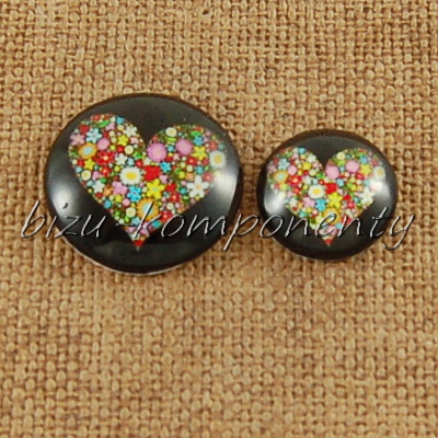 - Skleněný kabošon rozkvetlé srdce, 20mm