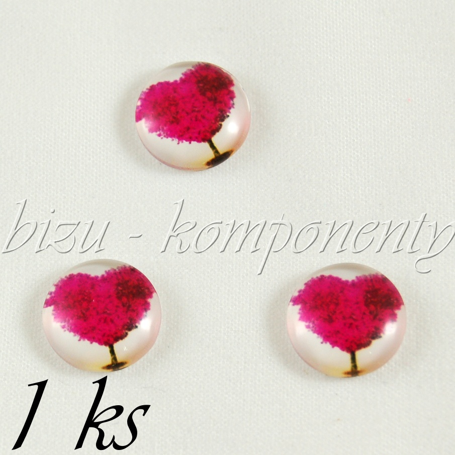 - Skleněný kabošon růžový srdíčkový strom, 18 mm