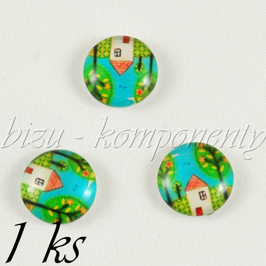 - Skleněný kabošon s domkem, 16 mm