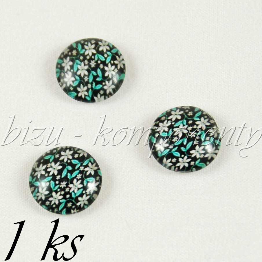Skleněný kabošon s kvítky a modrými lístky, 12 mmSkladem 20 ks9,00 Kč/ ks