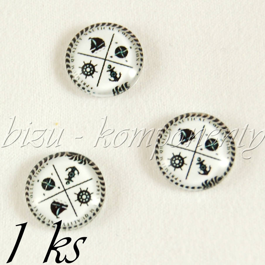 Skleněný kabošon s námořními symboly, 12 mmSkladem 70 ks8,00 Kč/ ks