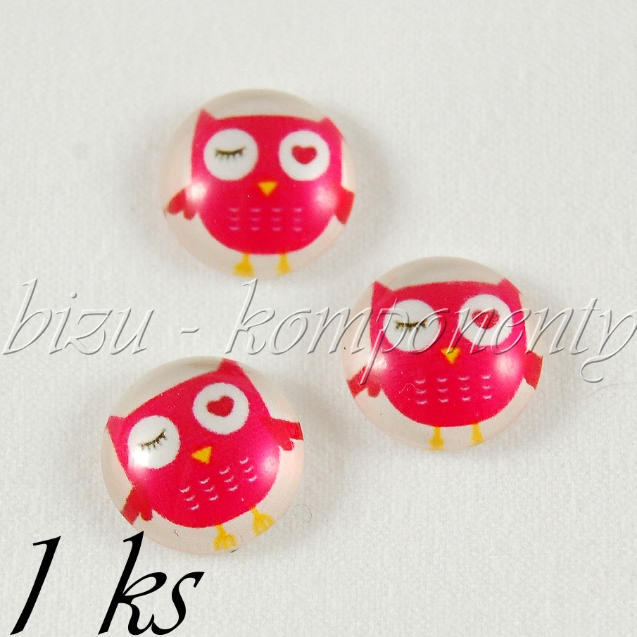 Skleněný kabošon s růžovou sovičkou, 20mmSkladem 6 ks15,00 Kč/ ks