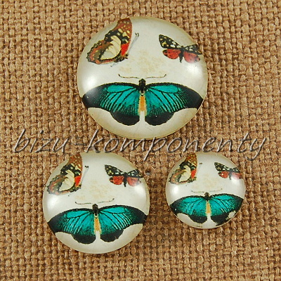 - Skleněný kabošon se třemi motýly, 12 mm