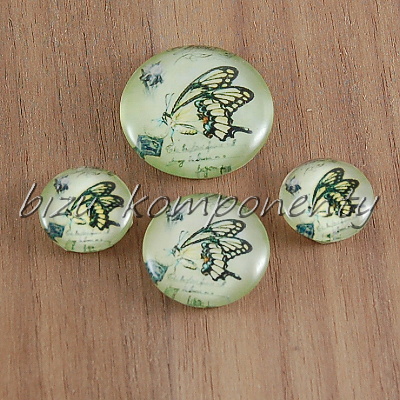 - Skleněný kabošon se žlutým motýlem, 12 mm