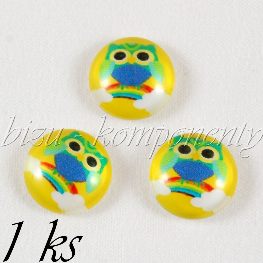 - Skleněný kabošon sovička na duze, 20mm