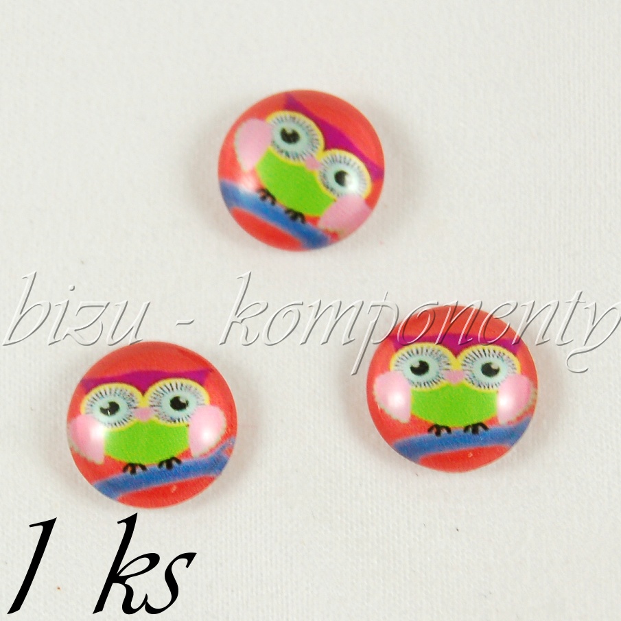 - Skleněný kabošon sovička na modré větvi, 20mm