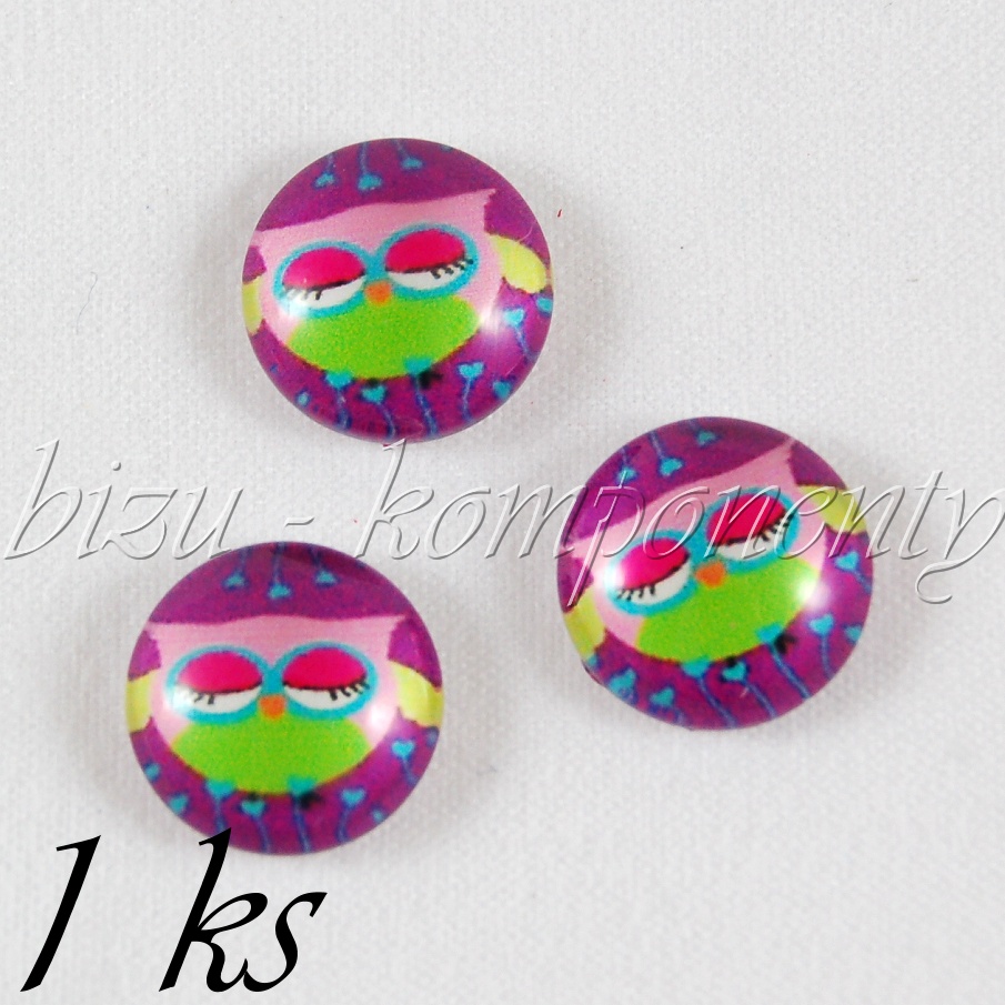 - Skleněný kabošon sovička na srdíčkové louce, 16 mm