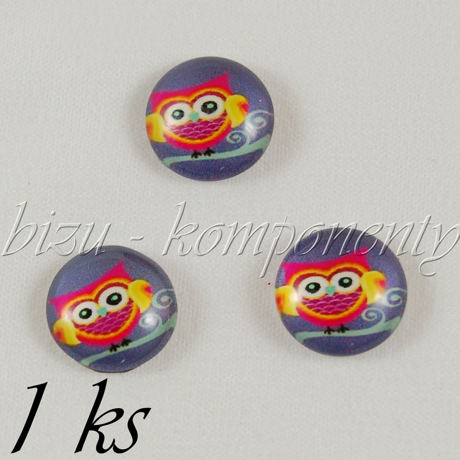 - Skleněný kabošon sovička na větvi s fialovým pozadím, 20mm