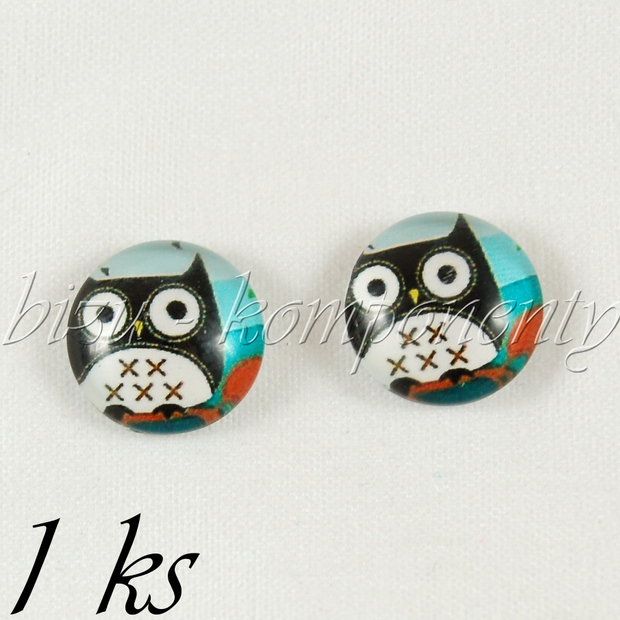 - Skleněný kabošon sovička piškvorková, 20mm