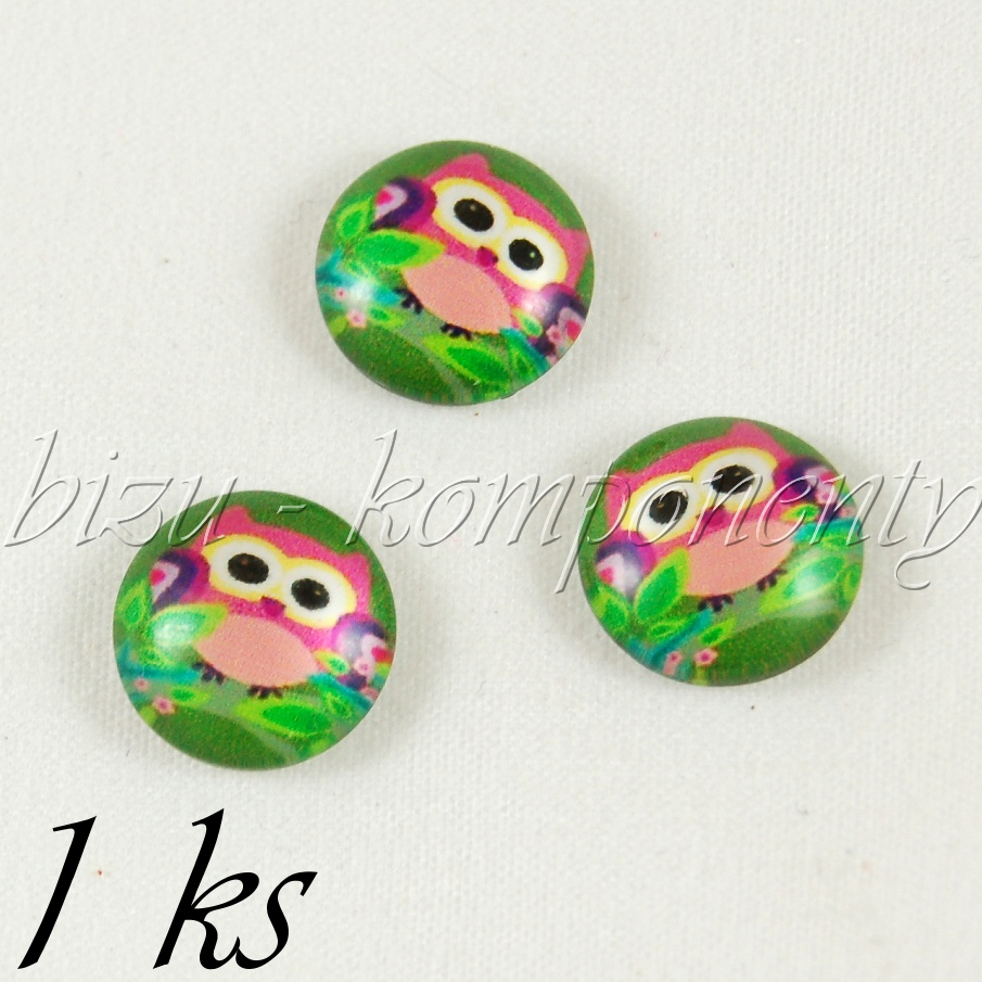 - Skleněný kabošon starorůžová sovička, 20mm