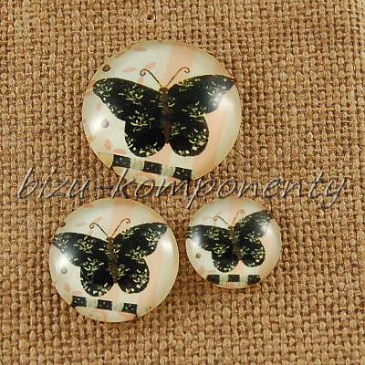 - Skleněný kabošon tmavý motýl, 16mm