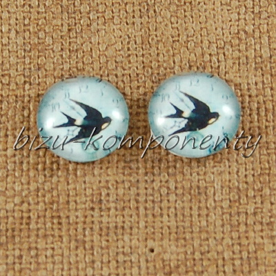 - Skleněný kabošon vlaštovka do modra, 12 mm
