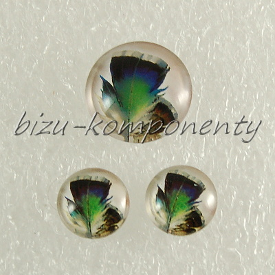 - Skleněný kabošon zelenomodré pero, 18mm