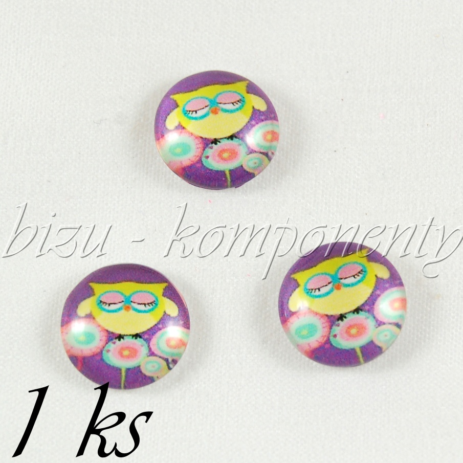 - Skleněný kabošon žlutá sovička na pampeliškách, 20mm
