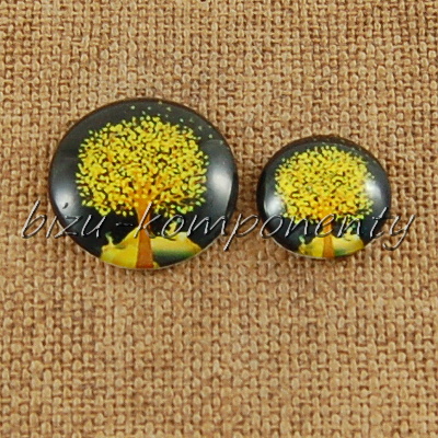 - Skleněný kabošon žlutě rozkvetlý strom, 14 mm