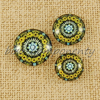 - Skleněný kabošon žluto-černá mandala,14 mm