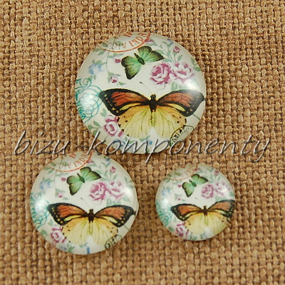 - Skleněný kabošon žlutohnědý motýl, 20mm